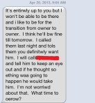 After we left them, I realized that I didn’t take any pictures, so I quickly sent a text to Missy, who replied with (the above) photos. We continued to text back and forth, and discussed how to get his vet records – we were very anxious to remove him from this terrible situation!